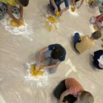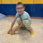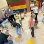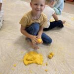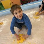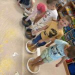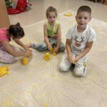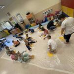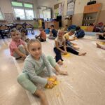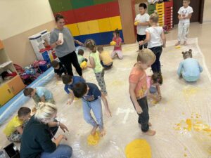 Za nami pierwszy z cyklu “Brudnych piątków” w grupie 6A. Przedszkolaki uczestniczyły w zajęciach sensorycznych bawiąc się dynioliną czyli masą z mąki ziemniaczanej i pulpy dyniowej. Zabawie i radości dzieci nie było końca. Po skończonych zajęciach przyszedł czas na doprowadzenie się do stanu pierwotnego czyli czekało nas mycie. Największym powodzeniem wśród dzieci cieszyło się mycie nóg w misce 🙂