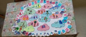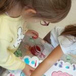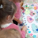 10 października w grupie “Ananasków” odbyło się pierwsze spotkanie czytelnicze związane z projektem edukacyjnym “Czytanie na dywanie-bohaterowie bez peleryny”. Pani Agnieszka, mama Alexa przeczytała dzieciom opowiadanie o “Odważnej żyrafie Małgorzacie”. Żyrafa Małgorzata jest dobrym przykładem tego, że determinacja i ciężka praca mogą prowadzić do spełnienia marzeń. Ananaski z uwagą wysłuchały opowiadania, które zachęciło dzieci do rozmyślań na temat marzeń i odwagi w dążeniu do celów. Po rozmowie o marzeniach dzieci miały za zadanie znaleźć w sobie odwagę – przejść po linie nad przepaścią, a następnie przeprawić się przez most zwodzony, po to, aby wycisnąć kolorową kroplę odwagi na wspólnie stworzoną chmurę marzeń.