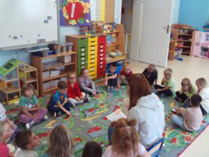W ramach projektu “Czytanie na dywanie – historie bohaterów bez peleryny” nasze przedszkole co miesiąc będą odwiedzali rodzice i będą czytali przedszkolakom książeczki. W październiku do grupy “Pszczółek” przyszła pani Klaudia, która przeczytała dzieciom opowiadanie o “Lisku – bohaterze kur”. Dzieci wysłuchały historii, wspólnie zastanawiały się nad zachowaniem bohatera i rozmawiały o tym, co to znaczy być prawdziwym bohaterem – nie tylko w bajkach, ale i w życiu. Bardzo dziękujemy rodzicom za zaangażowanie i wspólnie spędzony czas. Takie spotkania pokazują, że czytanie łączy pokolenia i rozwija dziecięcą wyobraźnię 🙂