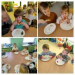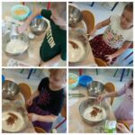 31 października w grupie “Ananasków” unosił się wspaniały zapach jesieni. Dzieci wspólnie piekły babeczki dyniowe – pyszne, pachnące cynamonem. Na początku przedszkolaki obejrzały prawdziwą dynię, dowiedziały się jak wygląda w środku i do czego można ją wykorzystać. Następnie wspólnie odmierzyły składniki: mąkę, cukier, jajka, startą dynię i przyprawy. Każdy miał okazję coś wsypać, zamieszać. Po upieczeniu przyszedł czas na degustację. Babeczki okazały się przepyszne – delikatne, wilgotne i słodkie. Dzieci były dumne ze swojej pracy i zgodnie stwierdziły, że wspólne pieczenie to nie tylko świetna zabawa, ale też sposób na poznawanie nowych smaków i zapachów. To był naprawdę pyszny i pachnący dzień w grupie “Ananasków”.