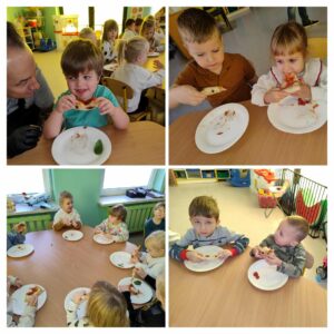W grupie 4B “Misie” odbyło się wyjątkowe wydarzenie – dzieci wspólnie z dwoma tatusiami przygotowały własną pizzę 🙂 Przedszkolaki z wielkim entuzjazmem mieszały składniki, wałkowały ciasto i przygotowywały pizzę z ulubionymi dodatkami. To była świetna zabawa i doskonała okazja do integracji 🙂