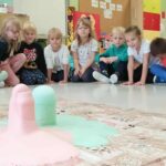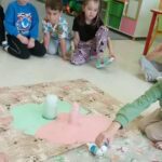 Piątkowy poranek w grupie “Ananasków” przebiegł pod hasłem czarów. Po pełnym emocji spotkaniu z Magikiem Dawidem dzieci z grupy 6B miały okazję do czarowania w swojej sali. Magia polegała na eksperymentowaniu. Dla przedszkolaka to proste, bezpieczne i fascynujące doświadczenie naukowe, które uczy dzieci przez zabawę, rozwijać ich ciekawość i zdolność obserwacji. Pozwala małym odkrywcom samodzielnie badać zjawiska fizyczne i chemiczne za pomocą łatwo dostępnych materiałów. Przedszkolaki użyły dziś drożdży, ciepłej wody, płynu do mycia naczyń, wody utlenionej i barwików spożywczych, aby stworzyć szaloną pianę czyli “Pastę słoniową”.