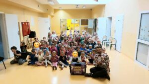Magik Dawid Leave a Comment / By Aneta Siarnowska / 17 października, 2025 W piątek 17 października do naszego przedszkola przybył Magik Dawid z pokazem sztuczek i wspaniałą zabawą. Uśmiech było widać na buziach małych i dużych przedszkolaków 🙂Kadra Radosnych Maluszków