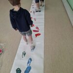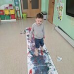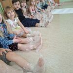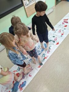 W grupie 4B “Misie” odbyły się zajęcia sensoryczne – malowanie stopami na folii bąbelkowej. To bardzo kreatywna i angażująca forma aktywności dla dzieci. Taka zabawa dostarcza wielu wrażeń sensorycznych, rozwija koordynację ruchową, wyobraźnię oraz zachęca do swobodnej ekspresji twórczej. Dodatkowo wspólna aktywność integruje grupę i wywołuje dużo radości oraz śmiechu 🙂