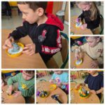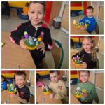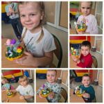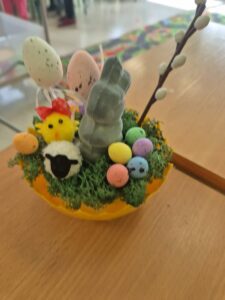 Przedszkolaki z grupy 5B “Sówki” z wielkim zaangażowaniem tworzyły własne stroiki wielkanocne. Powstały piękne kolorowe kompozycje z wykorzystaniem mchu, pisanek, gałązek bazi oraz świątecznych ozdób. W stroikach pojawiły się urocze zajączki, kurczaczki oraz baranki, które nadały im wyjątkowego świątecznego charakteru. Każde dziecko stworzyło swoją niepowtarzalną pracę, wkładając w nią dużo serca i kreatywności.