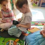 W piątek 13 marca grupę “Żabki” odwiedziła mama Bruna. Pani Dominika opowiedziała o swoim zawodzie – fotografa. Pokazała dzieciom jakich sprzętów używa, a także jak zmieniły się aparaty fotograficzne. Swoją przemianę mają również zdjęcia. Dziękujemy za ciekawe zajęcia 🙂