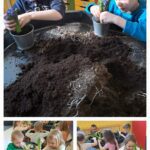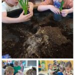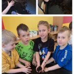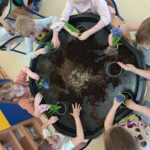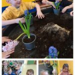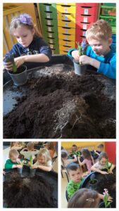 Przedszkolaki z grupy 5C zamieniły się w małych ogrodników. Dzieci z dużym zaangażowaniem sadziły hiacynty w doniczkach, ucząc się przy tym jak dbać o rośliny 🙂